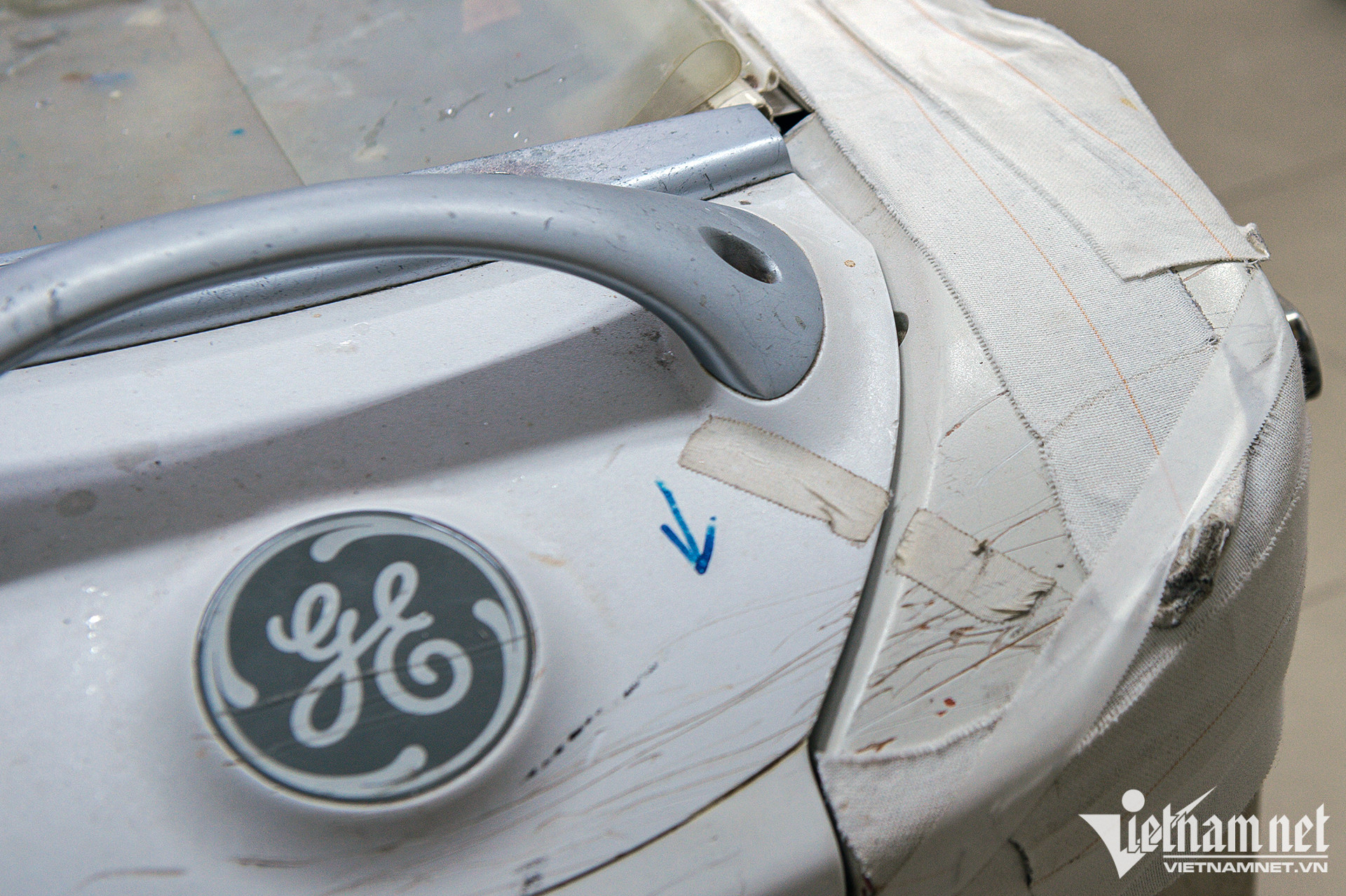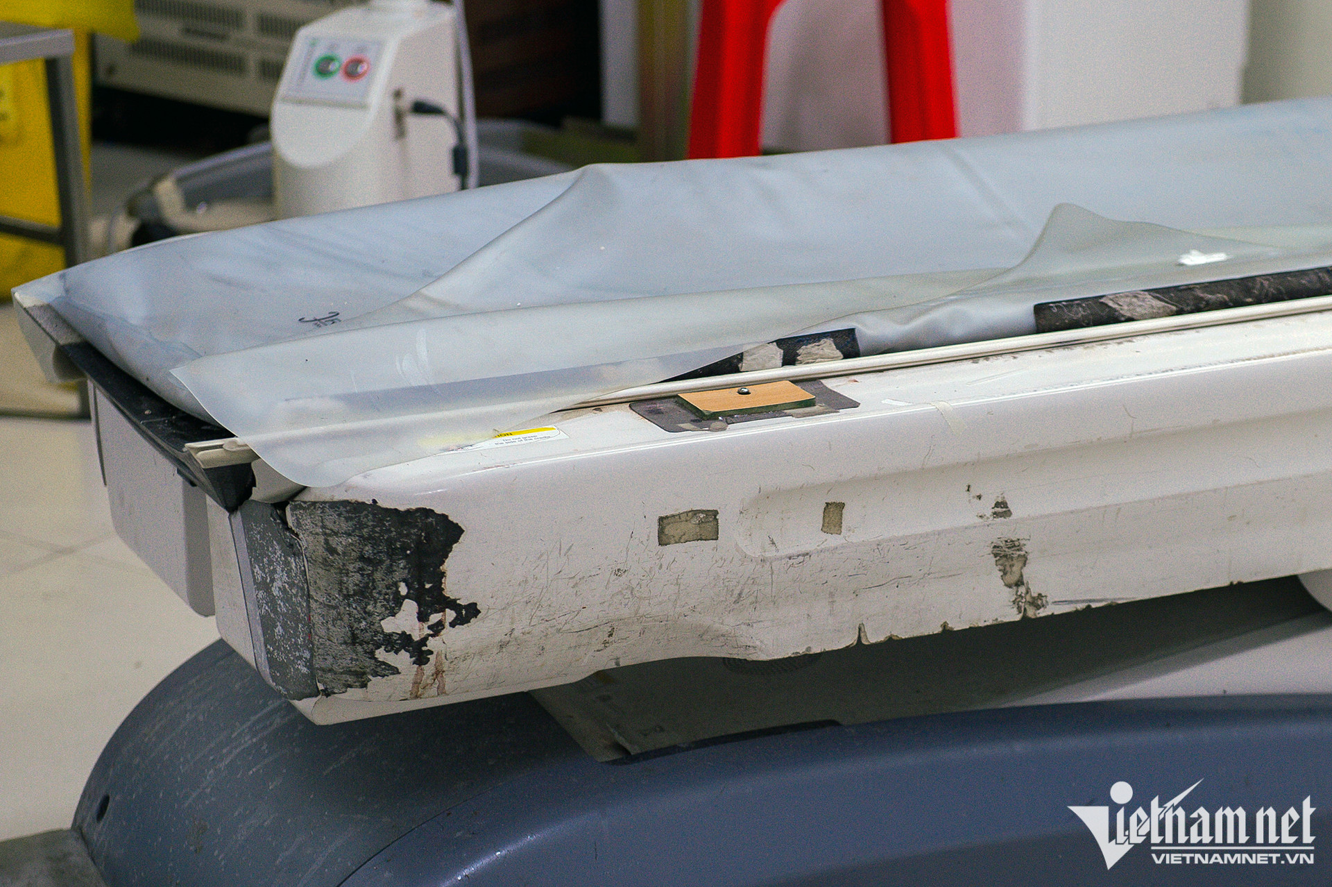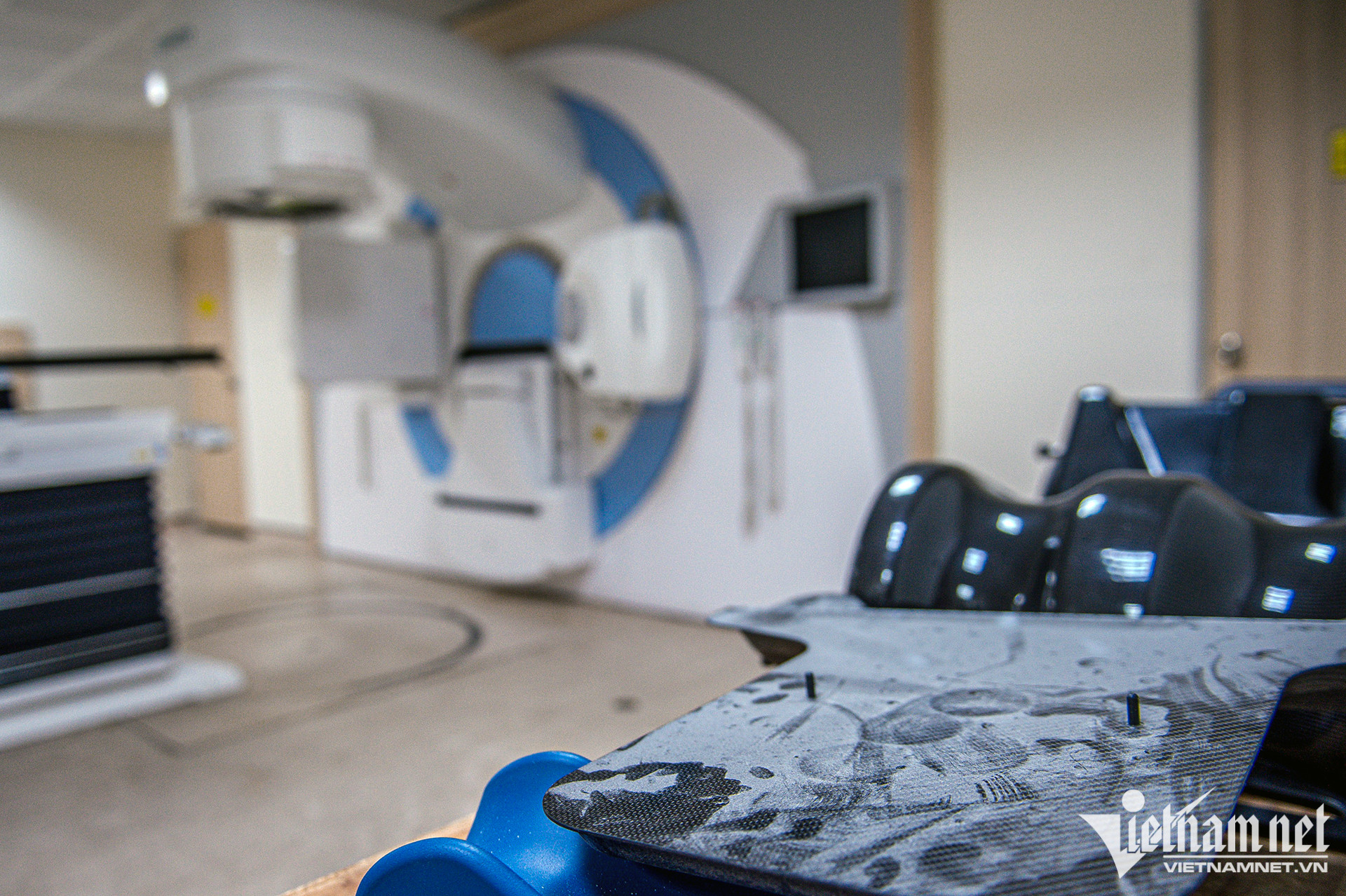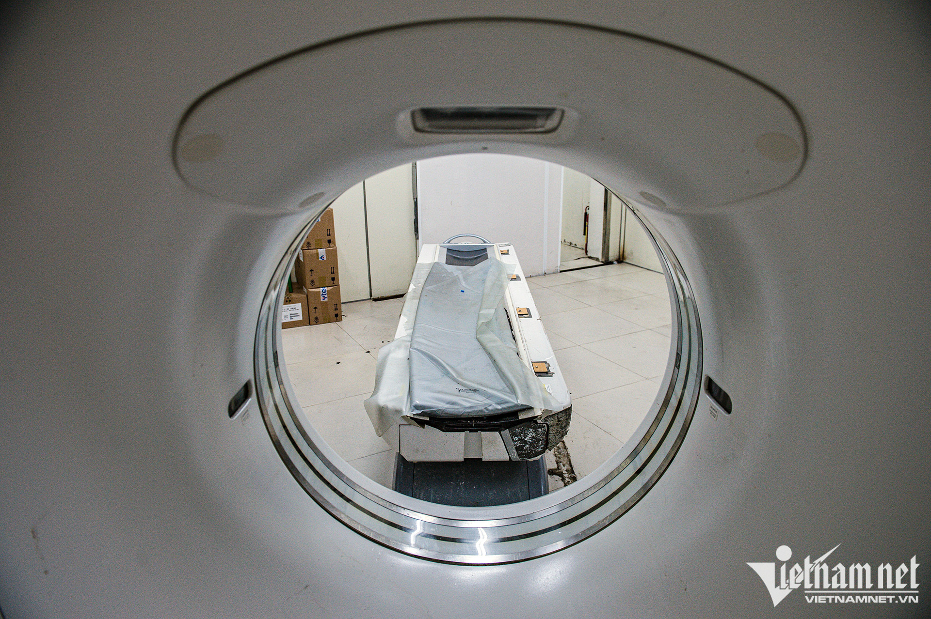 Toàn bệnh viện chỉ còn 2 máy CT hoạt động được trong tổng số 5 máy. Trong ảnh là máy chụp CT cấp cứu, được đặt ngay phía sau Khoa Cấp cứu để thuận tiện cho người bệnh. Vì máy đã hỏng, nhân viên y tế phải đẩy bệnh nhân một đoạn đường xa để đến Khu D (Trung tâm Ung bướu) để dùng máy CT còn lại.