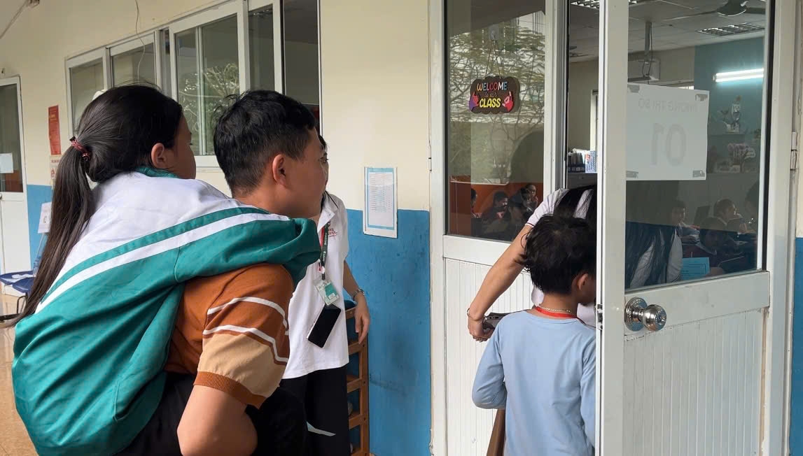 | Một thí sinh có sức khoẻ không được tốt được bố cõng đến trường dự thi. |