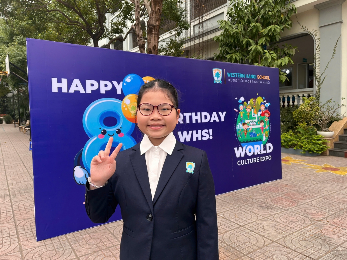 | Em Quỳnh Chi tự tin với kết quả làm bài của mình. |