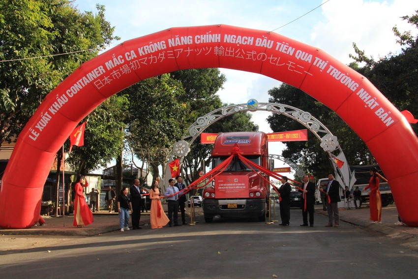 Lễ xuất khẩu lô hàng mắc ca chính ngạch đầu tiên ở Đắk Lắk sang thị trường Nhật Bản. Ảnh: CTV |