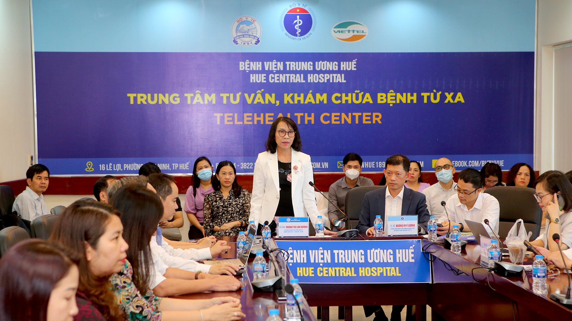 ThS.BSCKII Hoàng Thị Lan Hương - Phó Giám đốc BV Trung ương Huế chia sẻ tại buổi làm việc. Ảnh Thương Hiển