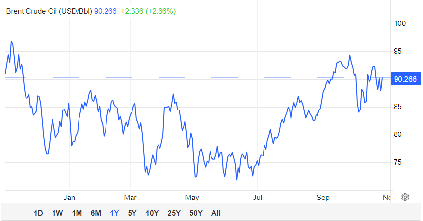 Là một doanh nghiệp thượng nguồn của ngành dầu khí, việc làm ăn của PVS rất thuận lợi khi giá dầu thế giới duy trì ở mức cao. Tính tới ngày 28/10, giá dầu Brent tương lai đang ở mức 90 USD/thùng.
