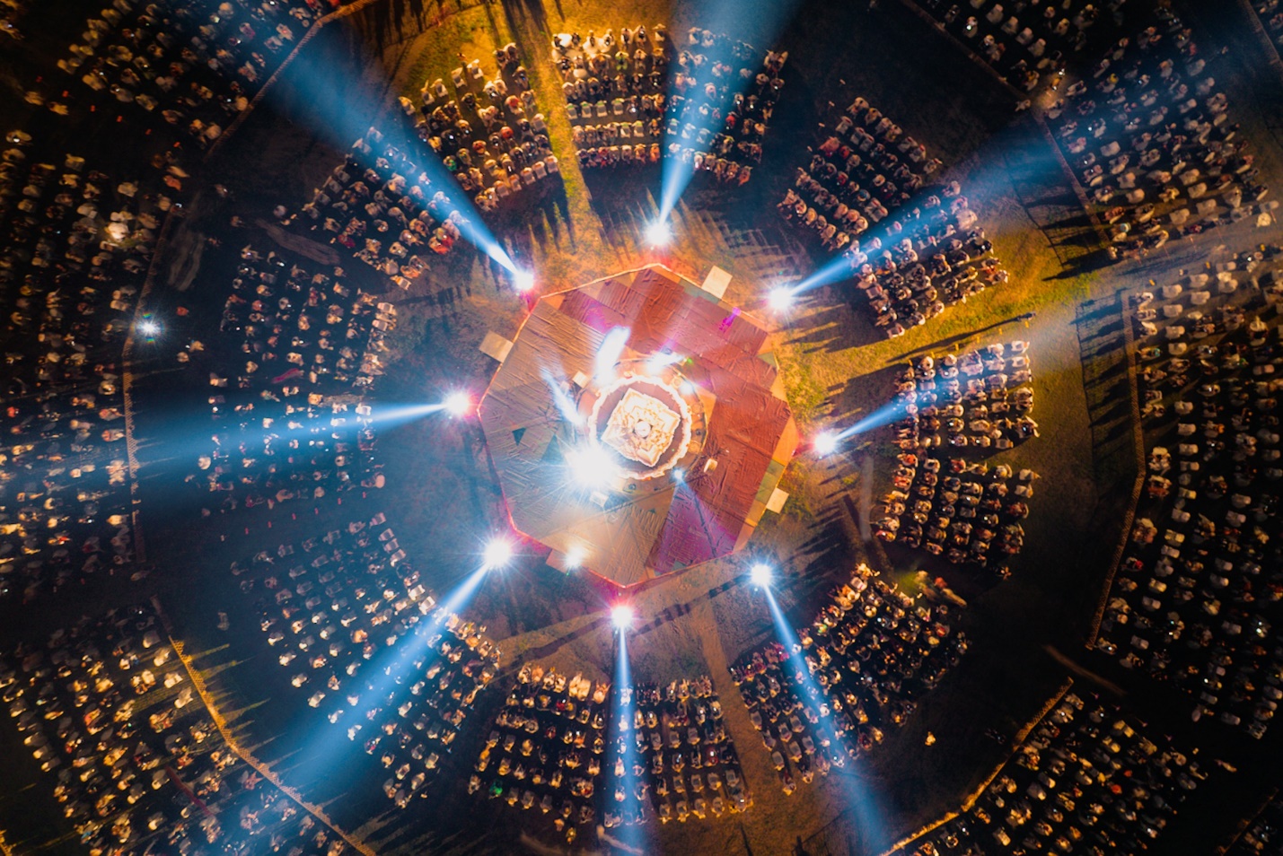 Khoảng 4.000 du khách được xếp ngồi xung quanh theo hình bát giác