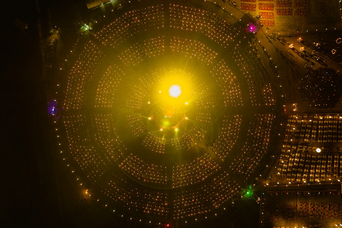 Đến 8h tối, lễ hội chính thức bắt đầu. Du khách tập trung quanh tháp trung tâm, 4.000 du khách được xếp ngồi xung quanh theo hình bát giác. Đầu tiên là các màn trình diễn múa dân gian, nghệ thuật truyền thống của dân tộc Lanna và lễ cầu may mắn cho mọi người, những điệu múa tiếng nhạc là cho không khí hết sức tưng bừng rộn ràng.