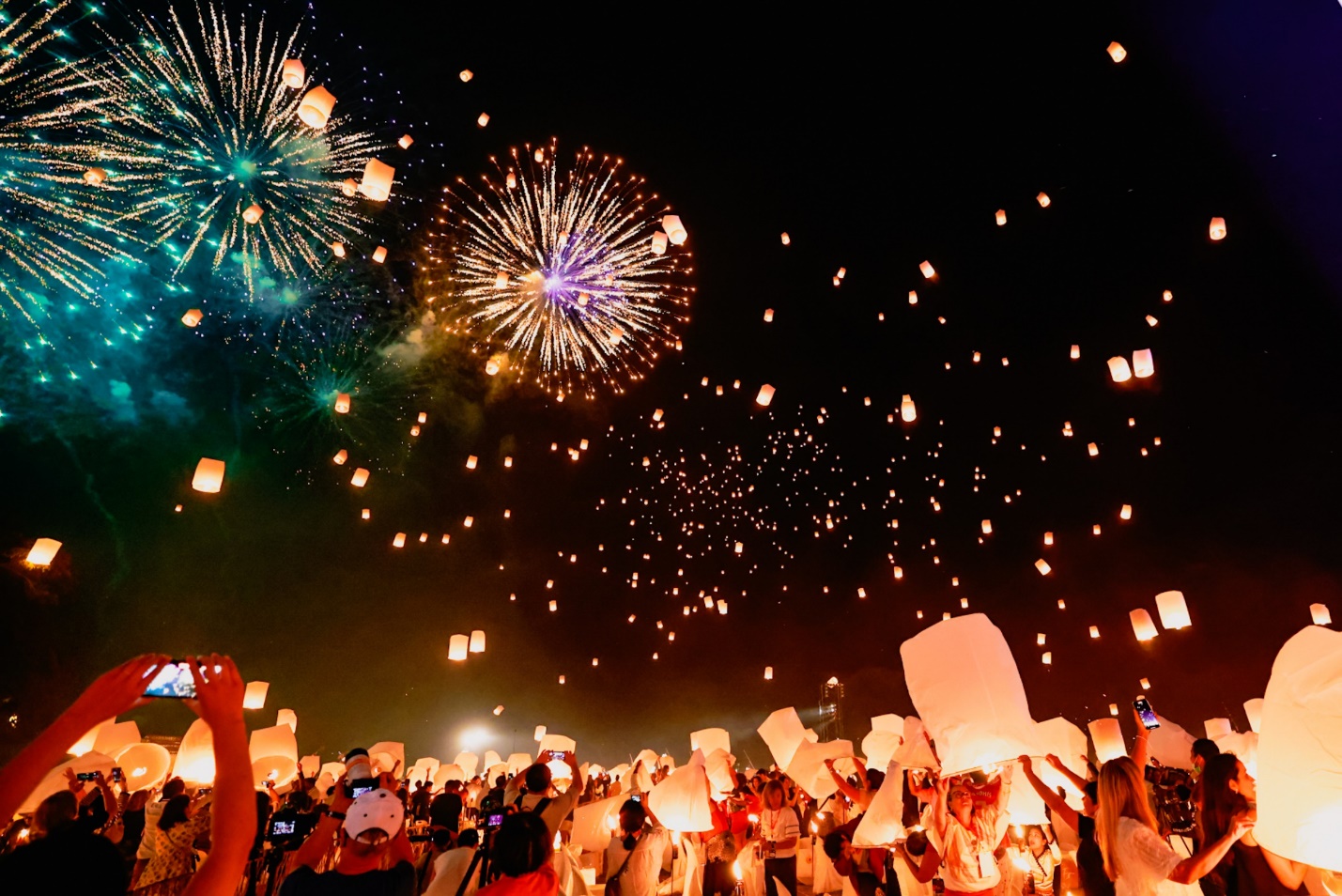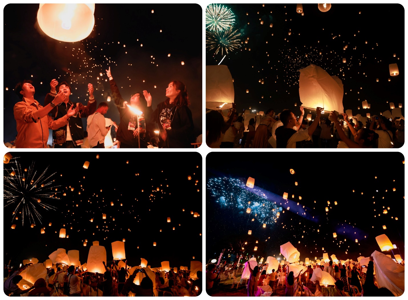 Và rồi khoảnh khắc mong chờ nhất cũng đến, sau 10 giây đếm ngược, hàng nghìn chiếc hoa đăng lung linh ánh lửa đồng loạt bay lên trời trong muôn tiếng vỗ tay vui mừng, pháo hoa cũng rực rỡ một vùng.