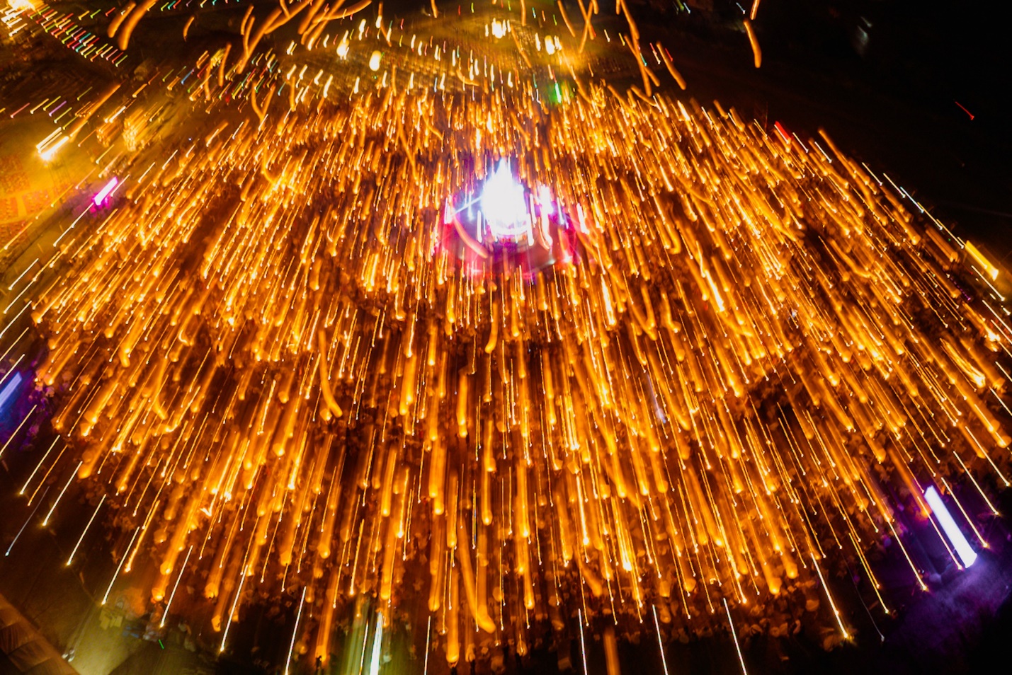 Pháo hoa cùng đèn lồng rực rỡ tạo ra một khung cảnh vô cùng choáng ngợp