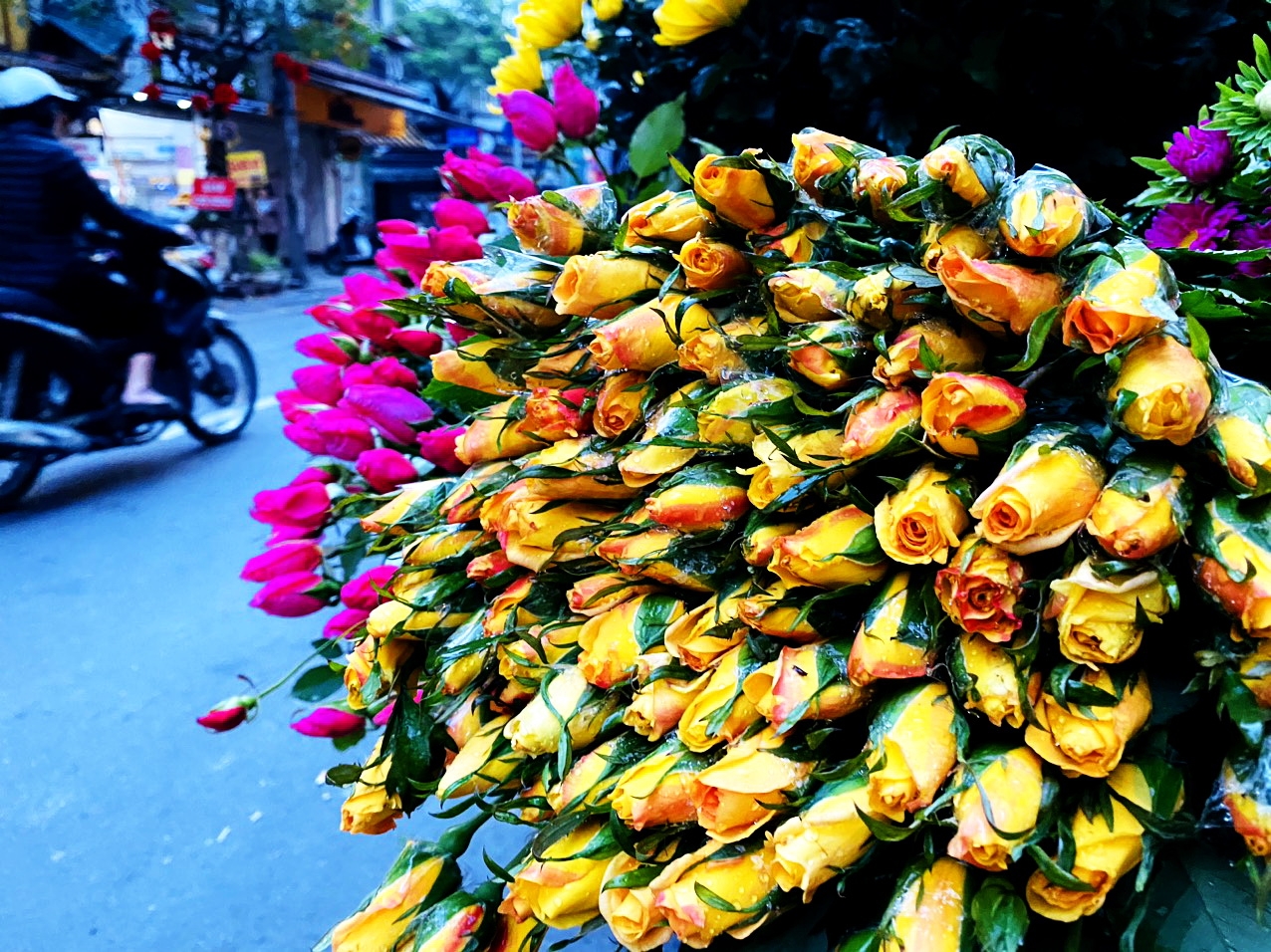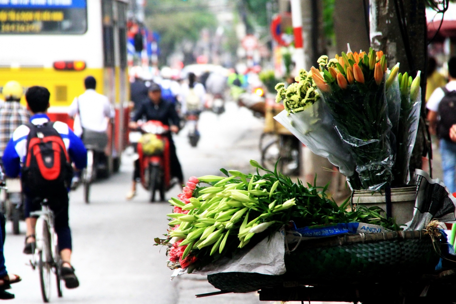 Cũng chỉ mới đây thôi, tôi đi vòng vòng vòng phố cổ Hà Nội sớm mai sương. Với một khoảng cách nhất định, những chiếc xe đạp chở hoa về phố nép mình bên vệ đường. Hoa xếp rất kỳ công, và gần như hoa hồng luôn có trên gánh hàng hoa. Những người khách quen tới lấy hoa, người bán hàng xếp lại chiếc xe chở đầy hoa của mình. Rồi khi nắng lên, những chiếc xe chở hoa bắt đầu di chuyển về chợ, con phố trở lại huyên náo bình thường.