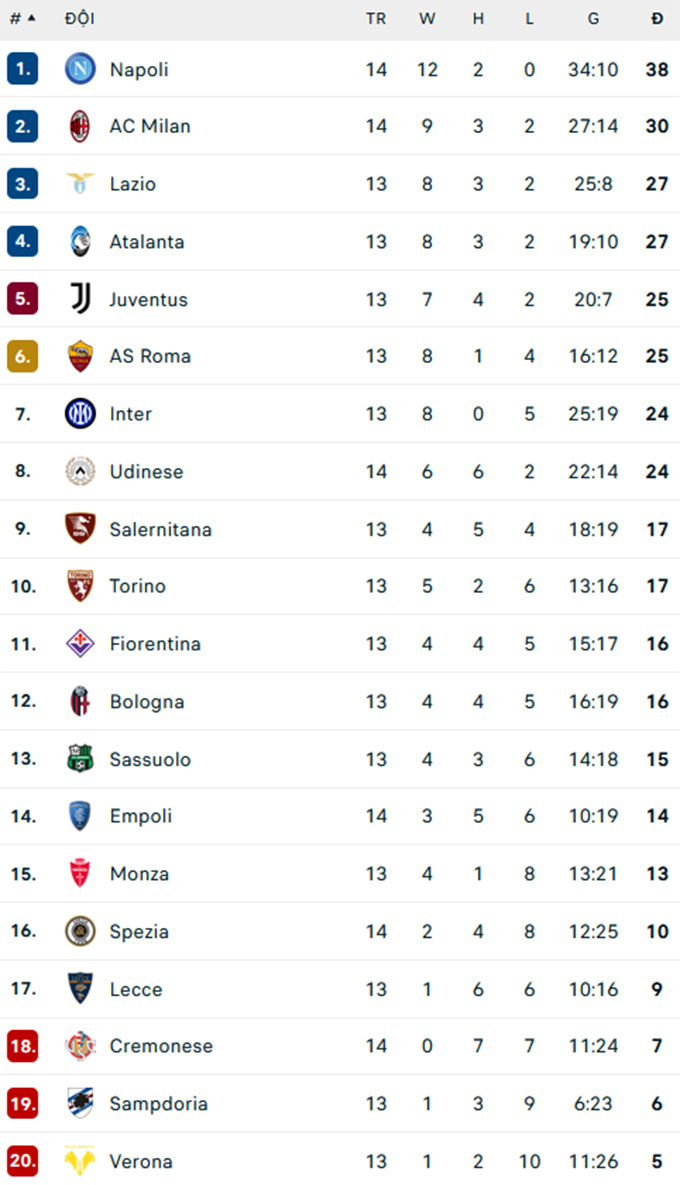 Chung cuộc, Napoli giành chiến thắng 2-0 để tiếp tục bất bại sau 14 trận ở Serie A. Họ xây chắc ngôi đầu bảng với 34 điểm.