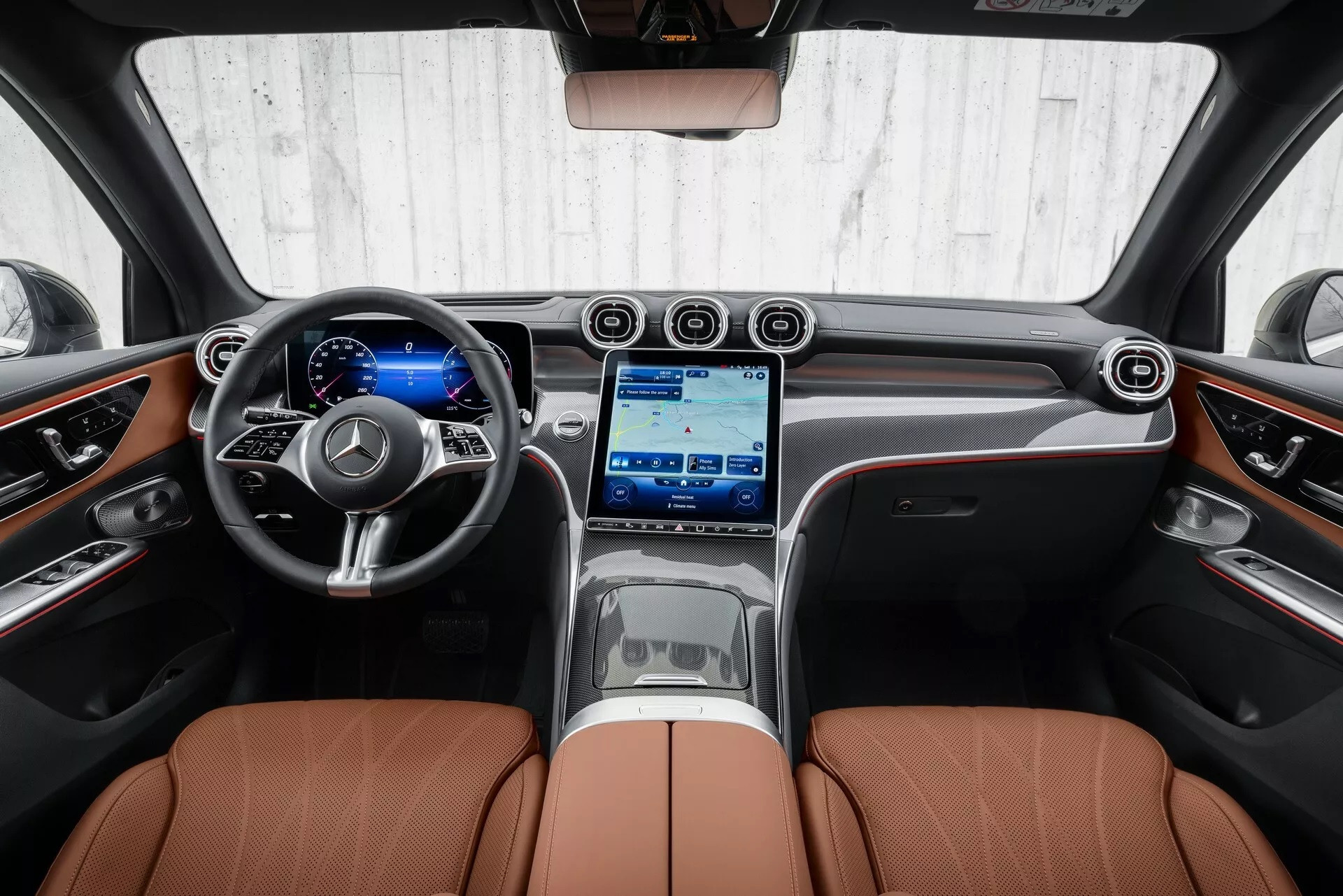 Mercedes-Benz GLC thế hệ mới sẽ có không gian nội thất bọc da MB-Tex và da nappa với một số chi tiết ốp gỗ tự nhiên có vân trắng và mạ chrome nhằm tăng vẻ sang trọng. Các trang bị đáng được mong chờ dù giá bán tăng có thể kể đến như cửa sổ trời toàn cảnh, ghế trước có sưởi/làm mát, ghế sau và vô-lăng có sưởi.