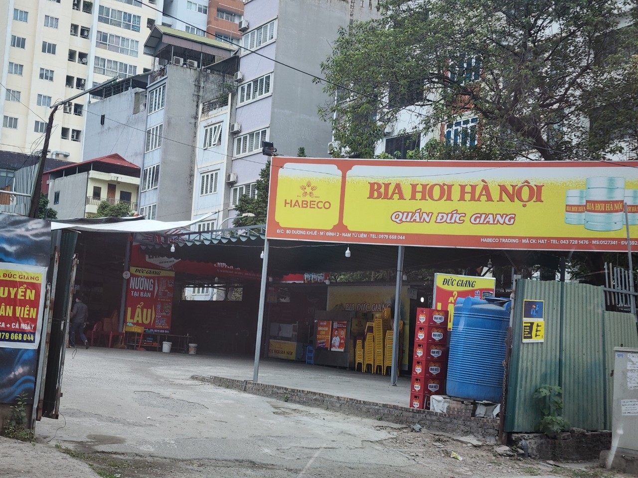Tìm hiểu kĩ hơn thì khu đất này được chia thành nhiều mảnh rồi cho thuê để sử dụng các mục đích khác nhau. Phía đầu đường Dương Khuê thì được ngăn để dựng nhà sắt làm bãi trông xe, tiếp đến là một mảnh được thuê để rửa xe mang tên bãi rửa xe QKlin 2. Còn phía trong cùng thì một mảnh đất khá rộng được người dân thuê để dựng nhà, lát nền khang trang mở quán bia hơi Hà Nội mang tên quán Đức Giang.