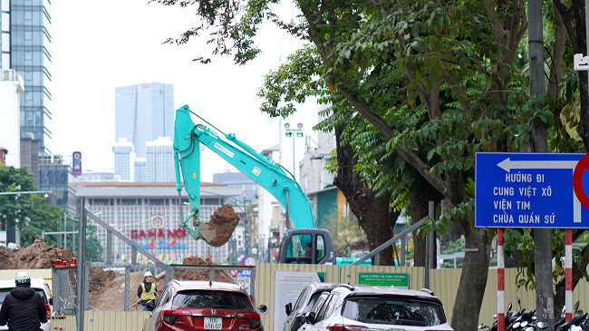 | Khu vực thi công giai đoạn 2 – ngã 3 Trần Hưng Đạo – Quán Sứ. |
