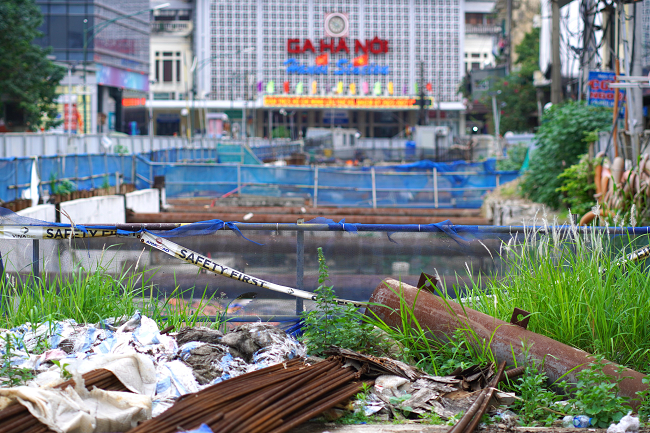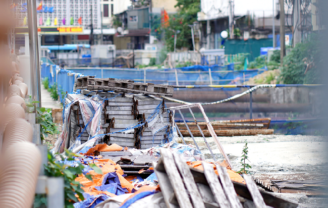 Về phía khu vực công trường giai đoạn 1 ga ngầm S12 cho đến thời điểm hiện tại vẫn đang bị nằm im bất động.