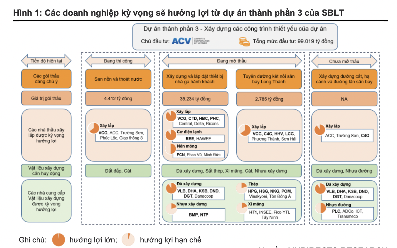 Ông Trần Bá Trung - chuyên viên phân tích tại Chứng khoán VNDIRECT - đánh giá: "Sân bay Long Thành sẽ là động lực tăng trưởng cho các doanh nghiệp xây dựng, vật liệu xây dựng trong giai đoạn 2023 - 2026. Sau khi hoàn thành, các doanh nghiệp cảng hàng không, dịch vụ hàng không và hãng hàng không cũng sẽ được hưởng lợi từ dự án".