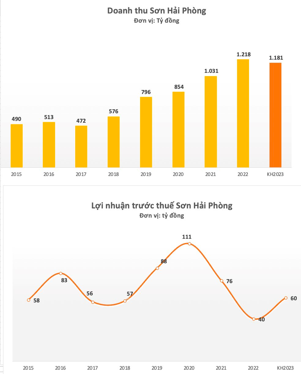 Về kế hoạch kinh doanh năm 2023, Sơn Hải Phòng đặt mục tiêu doanh thu đạt 1.181 tỷ đồng, giảm nhẹ so với năm 2022. Lợi nhuận sau thuế mục tiêu đạt 60 tỷ đồng, tăng 50% so với cùng kỳ. Nếu hoàn thành kế hoạch, đây sẽ là năm thứ 3 doanh nghiệp cán mốc doanh thu trên nghìn tỷ đồng. Về sản lượng tiêu thụ, Sơn Hải Phòng dự kiến đạt 17.000 tấn, trong đó 13.000 tấn sơn và 4.000 tấn nhựa Alkyd.