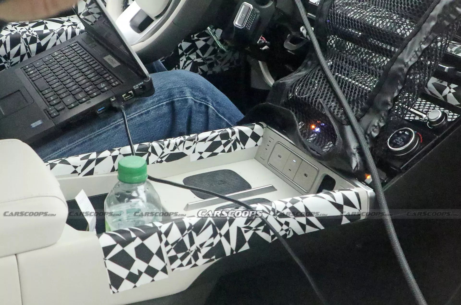 Bản thử nghiệm của Hyundai Santa Fe đời mới đã lộ diện cho thấy phần còn lại của táp lô sẽ bao gồm màn hình cong cỡ lớn, hốc gió điều hòa giống Hyundai Palisade và bảng điều khiển điện tử cho điều hòa.