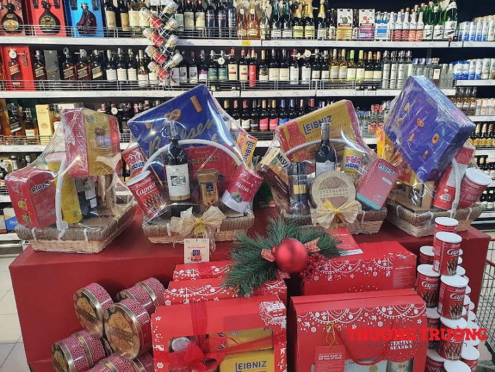Ghi nhận tại một số siêu thị ở Hà Nội, các giỏ quà Tết đã được trưng bày lên kệ để phục vụ khách hàng, tại đây các giỏ quà có nhiều mẫu mã khác nhau gồm hộp quà giấy cứng, hộp bằng hộp, bằng giỏ… giá các loại giỏ quà giao động phổ biến từ 200.000 - trên 2 triệu đồng.