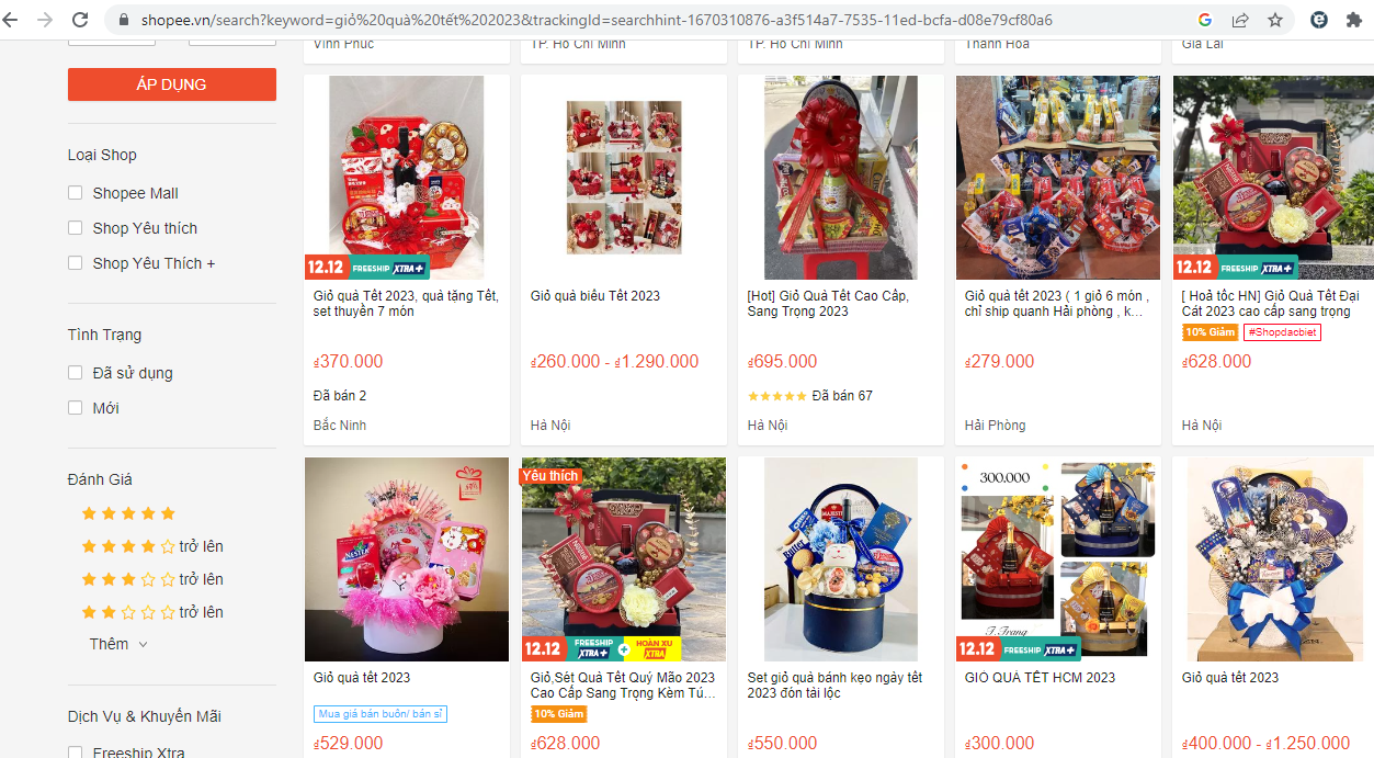Theo khảo sát của PV, tại các trung tâm thương mại và các siêu thị tại Hà Nội, giá các giỏ quà tết phổ biến từ vài trăm ngàn đồng đến vài triệu đồng. Với các giỏ quà truyền thống thường có bánh kẹo, mứt, trà, rượu, các loại hạt, cà phê, tùy vào từng giá tiền mà sản phẩm trong giỏ quà cũng khác nhau, dao động từ 300 đến trên 2 triệu đồng tuỳ theo nhu cầu của khách hàng.