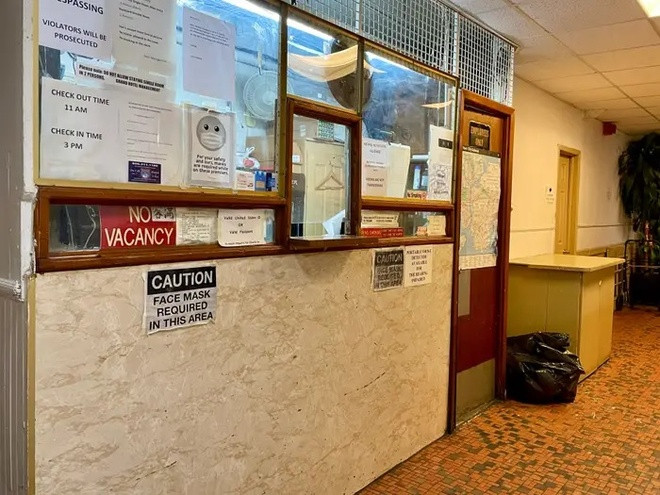 Không có thang máy, Bowery Grand chỉ có hai dãy cầu thang bộ đầy bụi bẩn và ố vàng dẫn tới quầy lễ tân trông như những quán cà phê hay bán đồ ăn hơn là khách sạn. Nơi này không có ghế chờ hay trang trí gì giống một khách sạn.