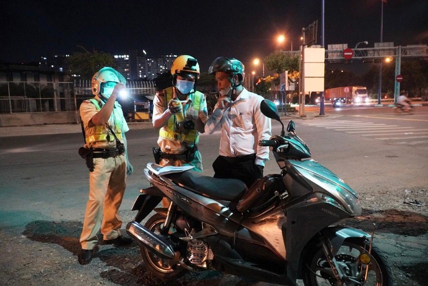 Tổ công tác thuộc Đội CSGT Cát Lái đã lập chốt tại giao lộ Mai Chí Thọ - Lương Định Của (TP Thủ Đức), tiến hành kiểm tra nồng độ cồn với nhiều phương tiện.