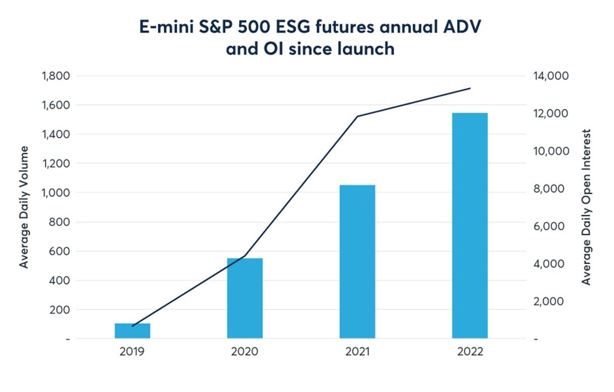 Theo báo cáo của CME vào tháng 10/2022, nhu cầu đầu tư vào các doanh nghiệp tuân thủ ESG liên tục tăng trưởng, lập kỉ lục qua các con số. Khối lượng trung bình hàng ngày của hợp đồng tương lai E-mini S&P 500 ESG chinh phục kỷ lục 2.760 hợp đồng trong tháng 9/2022, tăng 326% so với tháng 8.